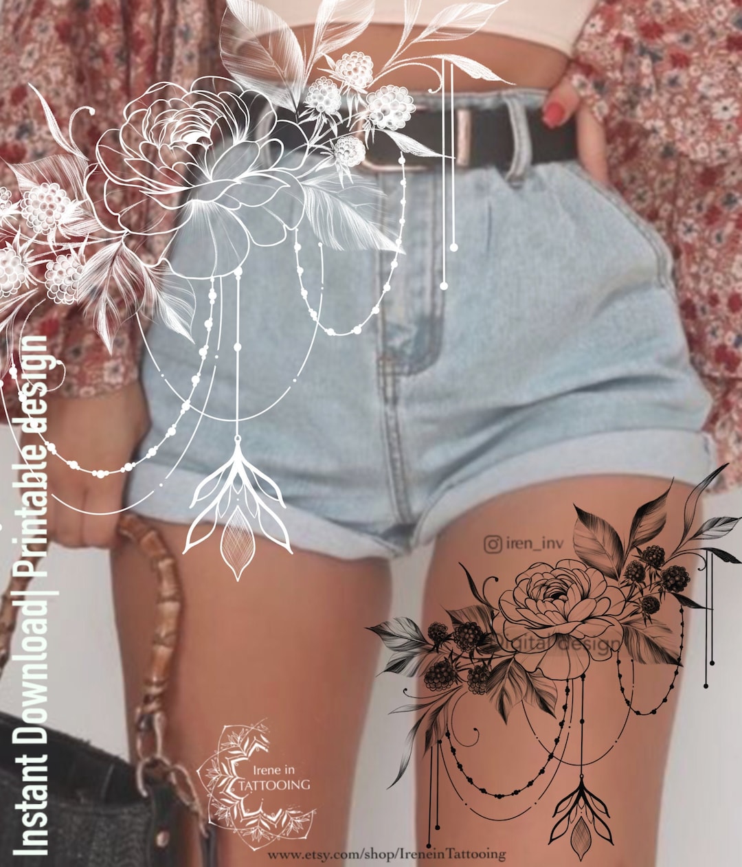 The Peony And Raspberries Tattoo Design Instant Download Etsy Uk